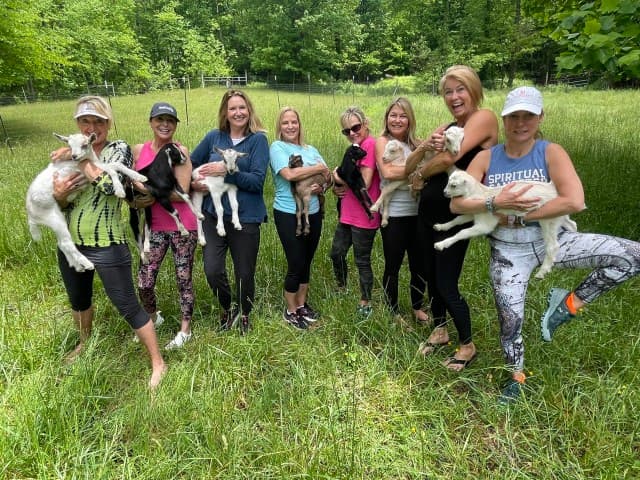 Disconnect with stress and connect with loving, social baby goats! This is a unique opportunity to let the busyness of the world melt away for a moment. You can expect a beginner-friendly yoga class that is easy to follow…and rejoin if you find yourself distracted throughout.