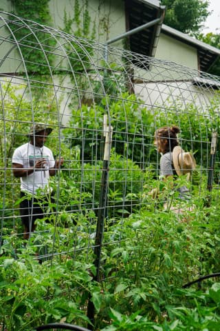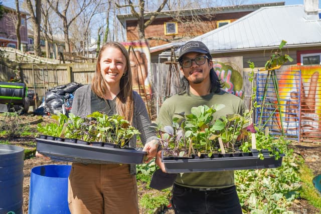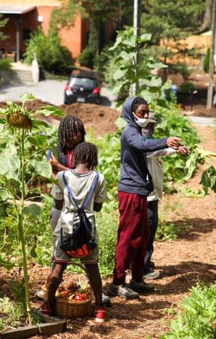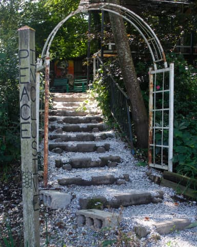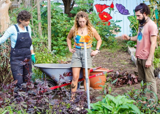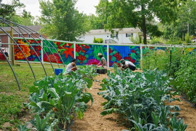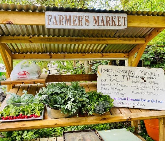 - Peace Gardens & Market: growing gardens, cultivating community, and transforming trauma. - Featured on Rob Greenfield Films! - Started by Safi Mahaba and DeWayne Barton in 2003 as a peaceful response to the war in Iraq and the war on drugs in the States, Peace Gardens & Market is a labor of love in the heart of the Burton Street Community in Asheville, NC. From its humble beginnings as an overgrown lot filled with discarded 40-ounce bottles, the Gardens are home to vegetable and flower gardening sites, performative stage area, fire pit, cob pizza oven, greenhouse, fresh produce market, and pavilion. Creating, maintaining, and connecting green spaces helps to absorb trauma in our community, and we welcome everyone to the Gardens. - We host garden workdays each Saturday from 10am-12pm where any and all are welcome to join us in pulling weeds, staking tomatoes, turning compost, harvesting veggies, mulching paths, and any number of other garden tasks. - Each week, during harvest season, we gather and weigh all of the produce coming out of the gardens. We then distribute garden care packages to neighborhood elders and use the rest to share with volunteers, make value-added products (like jams, jellies, pickles, salsas, relishes, and sauces), and for our weekly farmstand. As part of our ongoing work, we pay neighborhood youth a stipend to work in the gardens and assist with community beautification. - Peace Gardens & Market is also an art-filled space with murals, sculptures, and installations, many of which are created with found trash in the neighborhood. Through art, we represent stories and educate visitors about poverty, racial inequity, police abuse of power, gentrification, health and education access, and African American resiliency as it exists within the Burton Street Community and beyond. A single action can make a positive difference in our community but through collective action we can transform the world. - The gardens are open to the public year-round from dawn ‘til dusk each day. We welcome visitors, but ask that you stick to the Garden Guidelines (found onsite). Stop by for a visit, learning, cultivating, and communing! - Learn more about the founding organization, Hood Huggers International, and our community initiatives at hoodhuggers.com