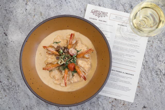 - Located in the heart of Downtown Asheville, Chestnut offers our take on hand-crafted food and cocktails. Our palette is best described as Southern American with a variety of ethnic twists. Our menu changes monthly and features a wide range of local and seasonal produce and proteins. Open 7 days a week for Dinner starting at 5pm & Brunch Friday, Saturday and Sunday, 10am-2:30pm. Located at 48 Biltmore Avenue, 28801. To make a reservation, visit us at https://www.chestnutasheville.com/ or call us at 828-575-2667.
