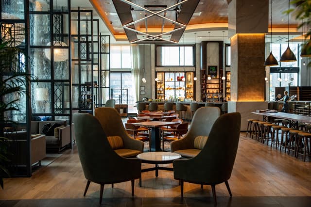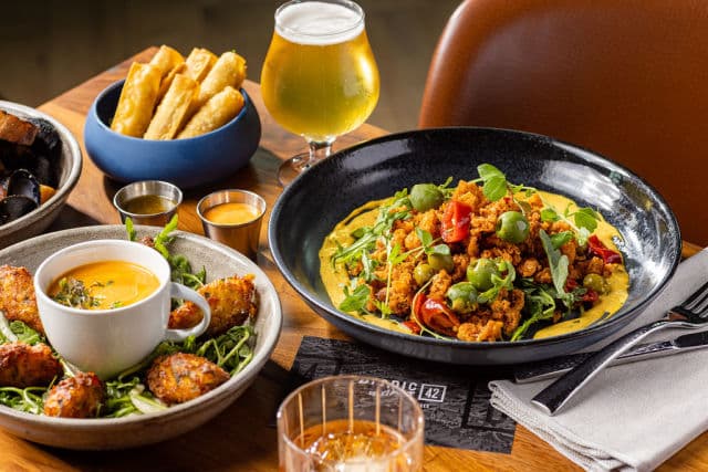 - District 42® is a convergence of small shareable plates, warm hospitality, and craft cocktails in the vibrant center of downtown Asheville, on the ground floor of the Kimpton Hotel Arras. Our all-day lounge and expansive bar is open seven days a week offering a mix of tables and soft seating. Our sister restaurant Bargello® features full-service whole preparations to share around the table. - We invite you to sit back and relax in the lounge or outdoor patio while you share great food and libations made with house-made juices, regionally-sourced bitters, and just a dash of downtown Asheville’s celebrated history. - OPEN EVERY DAY