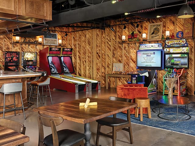 - The Draftsman Bar & Lounge is located in the heart of downtown on the lower level of The Restoration Hotel Asheville and specializes in craft cocktails and good times. Come enjoy a variety of activities from classic arcade games, pinball, skeeball, live music, and even a bowling alley. All games, except bowling, are free while enjoying the drinks or full food menu available at The Draftsman. The Draftsman is also available for private events.