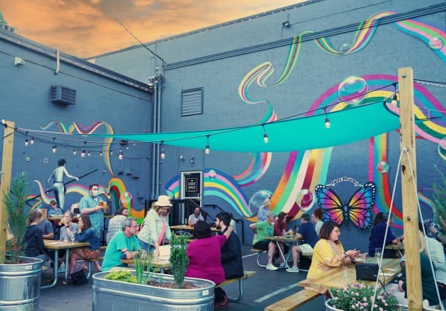 Located a half a mile from the Biltmore Estate and just up the road from both Hi-Wire Brewing's RAD Beer Garden and their original location turned Specialty Brewery & Taproom on Asheville’s South Slope, Hi-Wire’s 27,000 sq. ft. Biltmore Village Production Brewery & Taproom brings the brewing process to life by giving craft beer drinkers the opportunity to enjoy unique but approachable lagers and ales beside the tanks where they were crafted. This vibrant, mural-covered taproom features over 20 taps of Hi-Wire beers alongside cocktails and more, a large shaded patio, arcade games, a permanent food truck by Guajiro Cuban Comfort Food, plus two unique private events spaces – and free parking too.