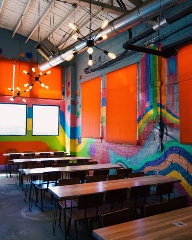 Discover the history and hidden mysteries within Hi-Wire Brewing's South Slope Specialty Brewery and Taproom. Established in the heart of Asheville's South Slope Brewery District in 2013, this original site has grown into a beacon for beer lovers, showcasing an impressive lineup of sour and wild ales, small-batch specialties, and taproom-exclusive brews across 20 unique taps. This cozy, mural-covered brewery and taproom are just up the road from two unique, sister locations: Hi-Wire Brewing Biltmore Village Production Brewery & Taproom and Hi-Wire Brewing RAD Beer Garden in the River Arts District.