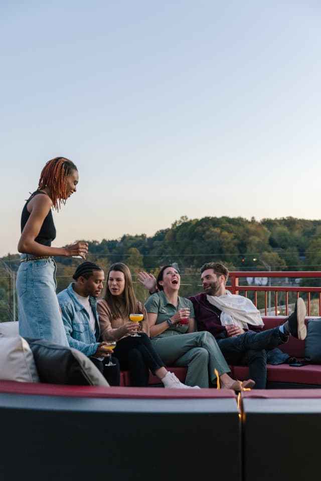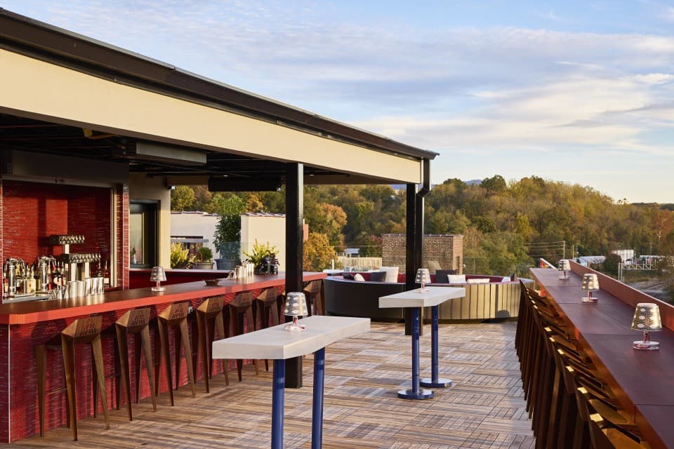 The Roof is a 125-person capacity rooftop bar overlooking the French Broad River and Asheville’s River Arts District. Open Thursday-Sunday from 3-10pm when the weather is right, the Roof’s open-air bar serves up an inviting atmosphere with the best views in town for nibbles, sunset cocktails and weekly live music.