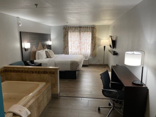 Experience the charm of a mountain lodge just minutes from Biltmore, downtown Asheville, the Blue Ridge Parkway, and the area's finest shopping and dining. Some of their amenities include a complimentary deluxe continental breakfast, indoor pool and hot tub, high speed wireless internet, fitness center, gift shop, and so much more. As a guest of the Brookstone Lodge, you will be impressed by their lodge decor with exposed timbers and stonework while relaxing around the lobby fireplace. The beautifully appointed guest rooms offer all the latest amenities including 32" flat screen HDTVs and granite tubs and vanities. Rooms include microwaves, coffee makers, mini-refrigerators, hair dryers, as well as iron and ironing board. They offer a comfortable and friendly atmosphere along with an unforgettable hospitality that makes you want Brookstone Lodge to be the place to stay when you are in Asheville. King rooms with jacuzzi tubs are available.