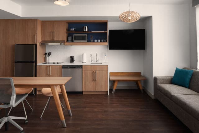 Wake up to sweeping mountain views and Asheville’s striking skyline in this beautifully designed, pet-friendly downtown hotel, where every room is thoughtfully curated for comfort and style. Perfect for both weekend getaways and extended stays, accommodations feature spa-inspired bathrooms, plush luxury bedding, high-speed Wi-Fi, and convenient in-room kitchenettes, offering all the comforts of home with an upscale touch.