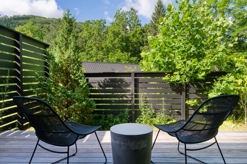 Escape to our tranquil cabins nestled along Shope Creek in the heart of the Blue Ridge Mountains of Western North Carolina. Our newly built modern cabins provide a peaceful oasis on 22 wooded acres for you to relax and unwind. We are located in East Asheville close to the Blue Ridge Parkway, Pisgah National Forest, and Warren Wilson College, and just 20 minutes to Downtown. Get the best of both worlds at Firelight thanks to a mix of vibrant city attractions and the natural beauty that makes Western North Carolina so famous. At Firelight you can take a stroll along our private hiking trails or lounge by the creek. Our raised garden beds and chicken coop provide fresh eggs, veggies, and herbs during your stay. Our small cabins sleep 2 guests and the larger home sleeps 4 guests and are perfectly suited for everything from romantic weekends to girlfriend getaways to small wellness retreats.