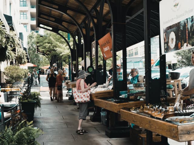 - Historical shopping center filled with local boutiques, craft goods, art galleries, and lifestyle services. Its 1920s-style architecture & large, iconic glass ceiling offer a truly unique shopping experience, rain or shine. One of the first indoor shopping malls in the world, the Grove Arcade was built by E.W. Grove, the same entrepreneur who built the Grove Park Inn. - Makers Market - Grove Arcade's south end is home to Makers Market, an outdoor market that features a rotating selection of some of Asheville's finest artisans and artists. - Restaurant Row - The restaurants on Grove Arcade's east end make up Restaurant Row, offering everything from Southern comfort cuisine, to wine bars, to grab-and-go casual bites. Live music on the weekends.