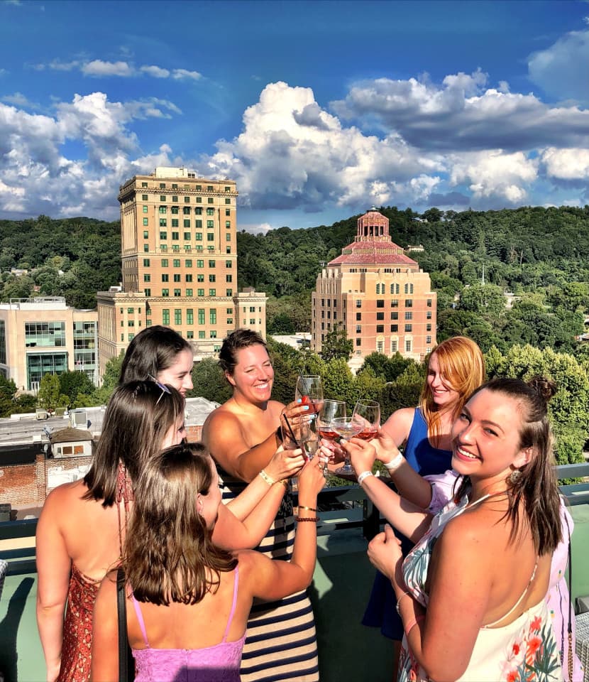 You'll experience Asheville's scenic beauty and historic landmarks, enjoy sample cocktails or mocktails (0% alcohol) at three rooftop bars, have reserved seating, and a local expert guide sharing Asheville's fascinating city history as we stroll the city streets to each location, and look out from the highest parts of the city. Full food menus available at each stop.