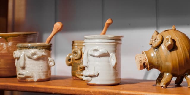 Unusual objects for unconventional people. We specialize in the unique, scouring the region looking for rough-around-the-edges rustic antiques, folk art, and fine craft. You won't find blah brown pottery here, but instead the creme-de-la-creme of local masters. Funky handmade jewelry, and brilliant blown glass.