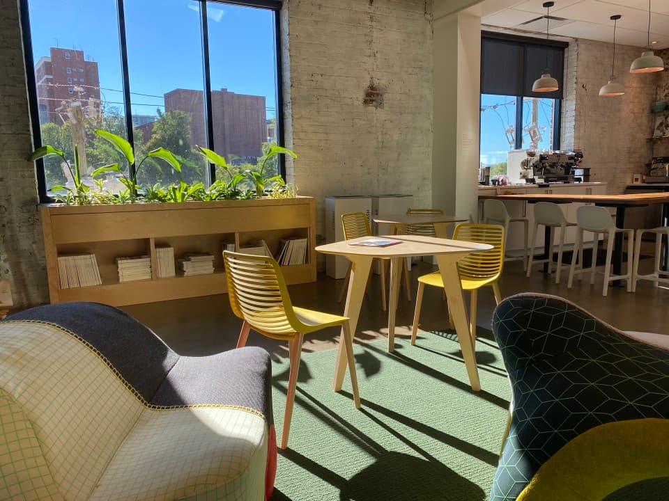 If you are in need of a space to work while visiting or holding meetings, Cowork at Center for Craft offers a perfect mix of shared and private workspace, including a reading lounge, kitchenette, a coffee lounge and privacy booths.