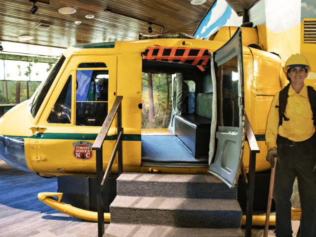 The Cradle of Forestry in America is nestled in the Pisgah National Forest along the Blue Ridge Mountains of western North Carolina. Our trails offer visitors a chance to explore seven historical buildings from the time of the Biltmore Forest School (1898-1914), climb aboard and ring the bell of a 1914 Climax logging train engine, and interact with historical interpreters through programs and special events. Inside our Discovery Center, you’ll find our gift shop bursting with nature-themed books, clothing, toys, and crafts, a spacious theater playing a short film about the history of our site, and an interactive exhibit hall. You can also view the mature American Sycamore Apollo Moon Tree on our campus.